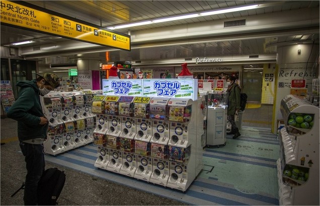 En Japón existen muchos robots y todo tipo de máquinas. Es común ver máquinas que reemplazan a las personas en sus funciones. Por ejemplo, en esta tienda no hay cajeros, solo máquinas dispensadoras. Acá no hay interacción social, por lo que es un sueño para los introvertidos.
