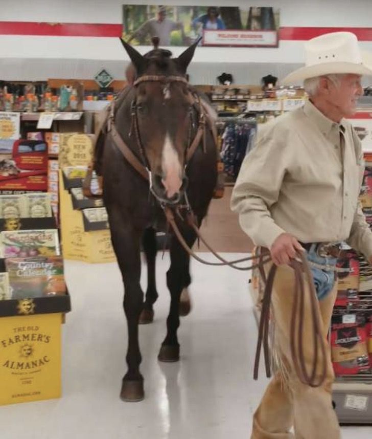Por supuesto que los clientes se asombraron, pero ninguno tuvo problemas con la situación, muy por el contrario, todos consideraron que era un tierno paseo. Al ver al hombre que ingresaba con su caballo, Robin Morris, que ese día estaba en la tienda, no dudó en sacar su teléfono y comenzar a grabar, ya que no siempre se ve algo así.